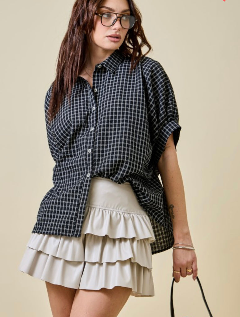 Black and White Blooms Top