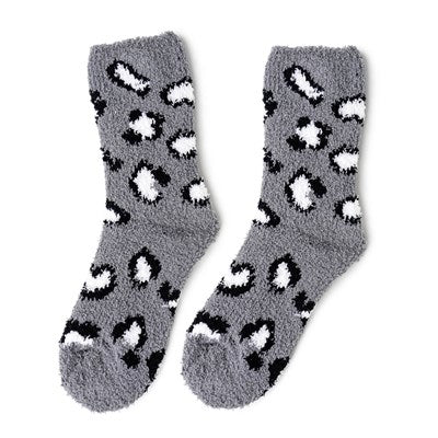 Fuzzy, fluffy socks in trendy cheetah print are the perfect addition to any comfy outfit.