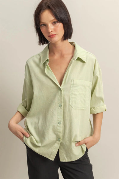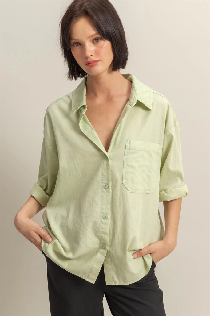Stay Chill And Look Cute While Doing That, All Thanks To This Shirt. A Collared Neckline Leads To Three-Quarter Sleeves And A Front Button Placket. The Shirt Has A Relaxed Fit And Is Completed With A Single Chest Pocket.